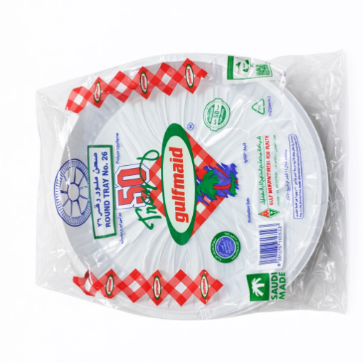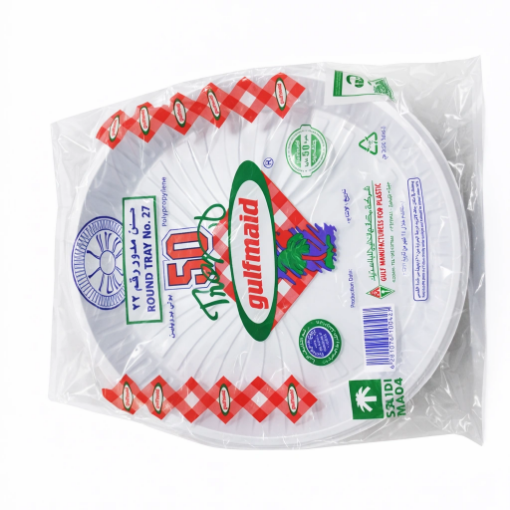 اختيار عملي ومناسب لتقديم الأطعمة في المناسبات والتجمعات مع Al Khaleej Round Plate صحن الخليج المدور رقم 26. يتميز بتصميم دائري واسع يوفر مساحة مناسبة لتقديم الوجبات، الأرز، المشويات، والحلويات، مع خامة بلاستيكية قوية تتحمل الاستخدام.