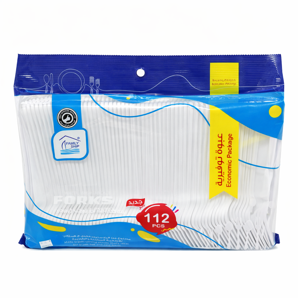 شوك أكل عالية الجودة من رايت باللون الأبيض الأنيق، مصممة لتقديم الوجبات بطريقة عملية وآمنة. مصنوعة من بلاستيك متين يتحمل الاستخدام أثناء الأكل، مما يجعلها مناسبة للمناسبات، المطاعم، الرحلات، والاستخدام المنزلي. عبوة اقتصادية تلبي احتياجات الاستخدام المكثف.