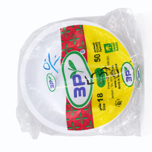 صحن بلاستيك رقم 18 سادة – ثري بي | عبوة 50 حبة × 20 ربطة