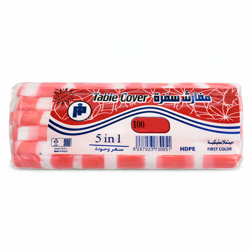 High-quality 5×1 table covers from Al-Oula, designed for practical daily use and gatherings. Made from durable material that helps protect tables from spills and stains. Easy to spread and dispose of after use, making them ideal for homes, trips, and events.