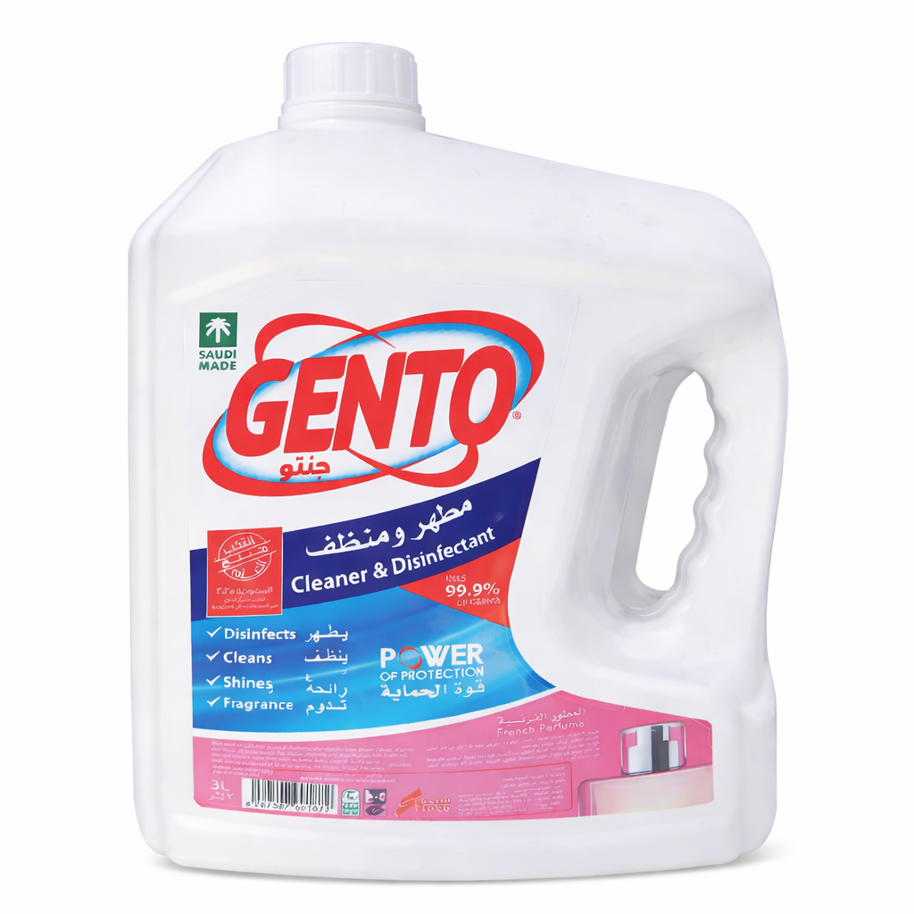 Gento disinfectant features an effective formula for cleaning and disinfection, helping eliminate germs and bacteria while leaving surfaces clean and hygienic. Infused with a refreshing French Perfume scent that provides long-lasting freshness. Suitable for daily use on various surfaces such as floors, bathrooms, and kitchens.