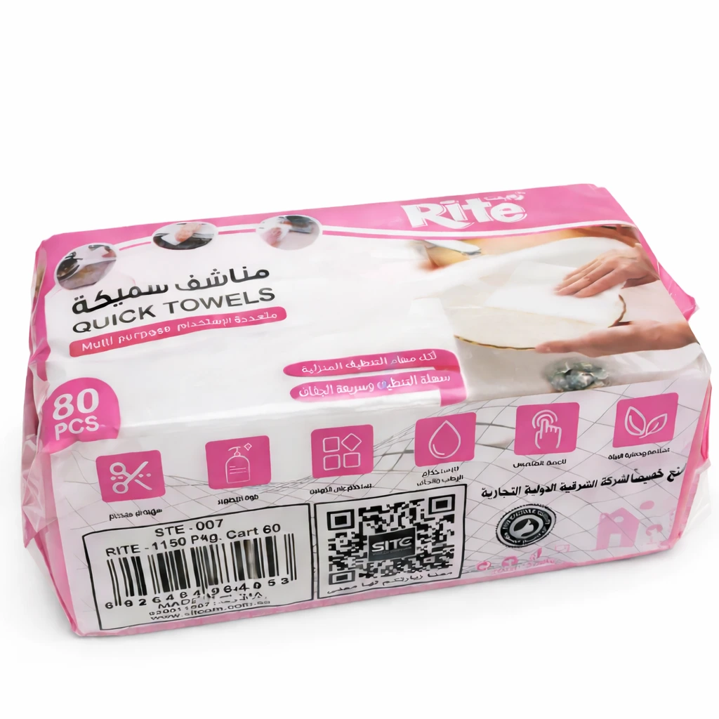 Thick and highly absorbent kitchen drying towels designed to dry dishes and surfaces quickly and efficiently. Made from strong, durable material that resists tearing, making them ideal for daily kitchen use. The economical pack of 80 pieces is perfect for home kitchens and restaurants.
