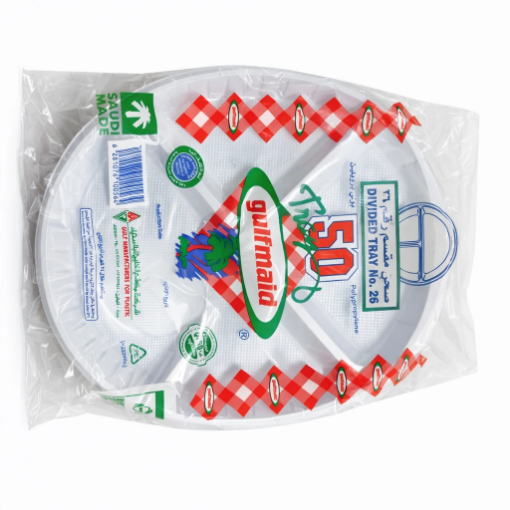 صحن بلاستيك مدور رقم 26 مقسم – شد 50 × 10 ربطة – الخليج