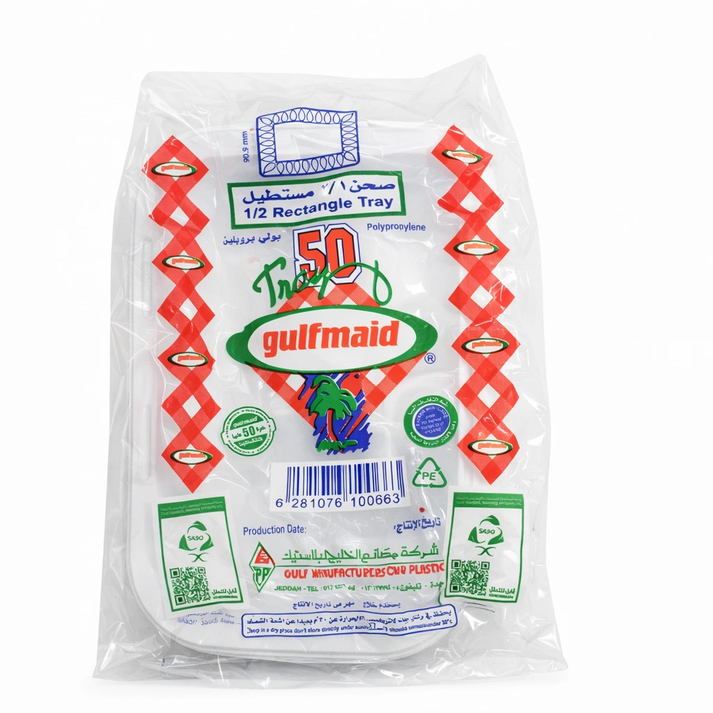 A practical and convenient solution for serving food at gatherings and events with Al Khaleej ½ Rectangular Plastic Plates. Made from durable plastic material, designed to handle various types of food for parties, picnics, and catering needs.