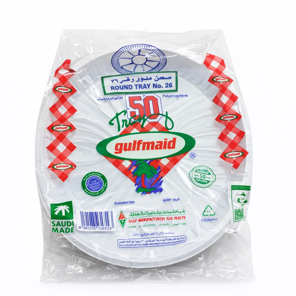 A practical serving solution for gatherings and events with Al Khaleej Round Plate No.26. Designed with a spacious round shape, ideal for serving main meals, rice dishes, grilled items, and desserts. Made from durable plastic material suitable for various occasions and catering needs.